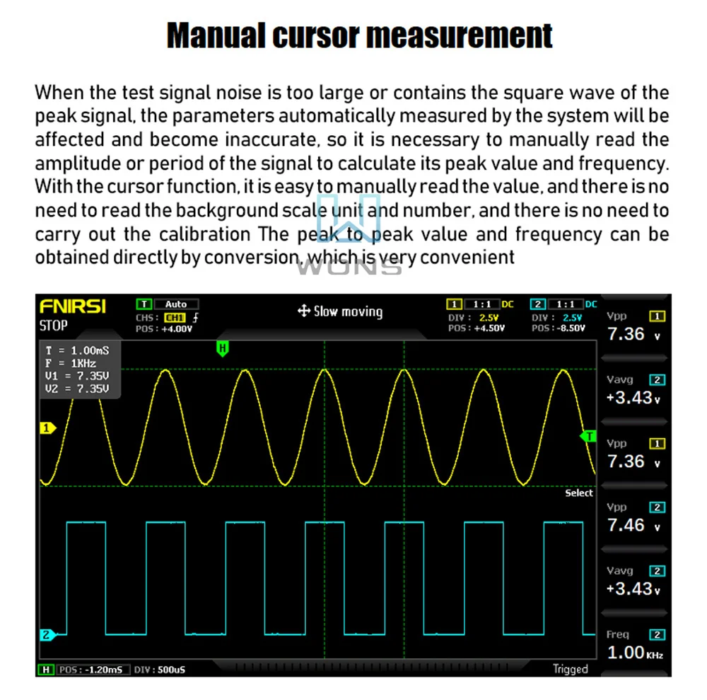 9: Функция измерения курсора, удобная для ручного измерения периодической частоты и напряжения