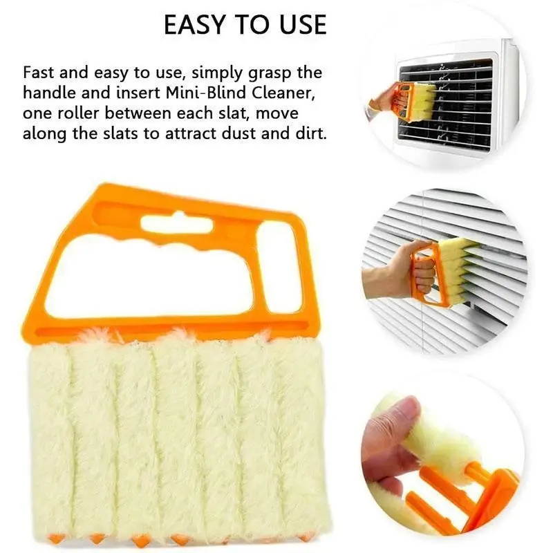 Уникальный дизайнВ соответствии с формой руки, предназначенной для того, чтобы крепко держать кисть в руках, легко управлять щеткой с помощью лезвия затвора закрыть контакт, просто возьмите ручку и вставьте мини-слепой очиститель, один ролик между каждой планкой, двигайтесь вдоль планок, чтобы привлечь пыль и грязь.