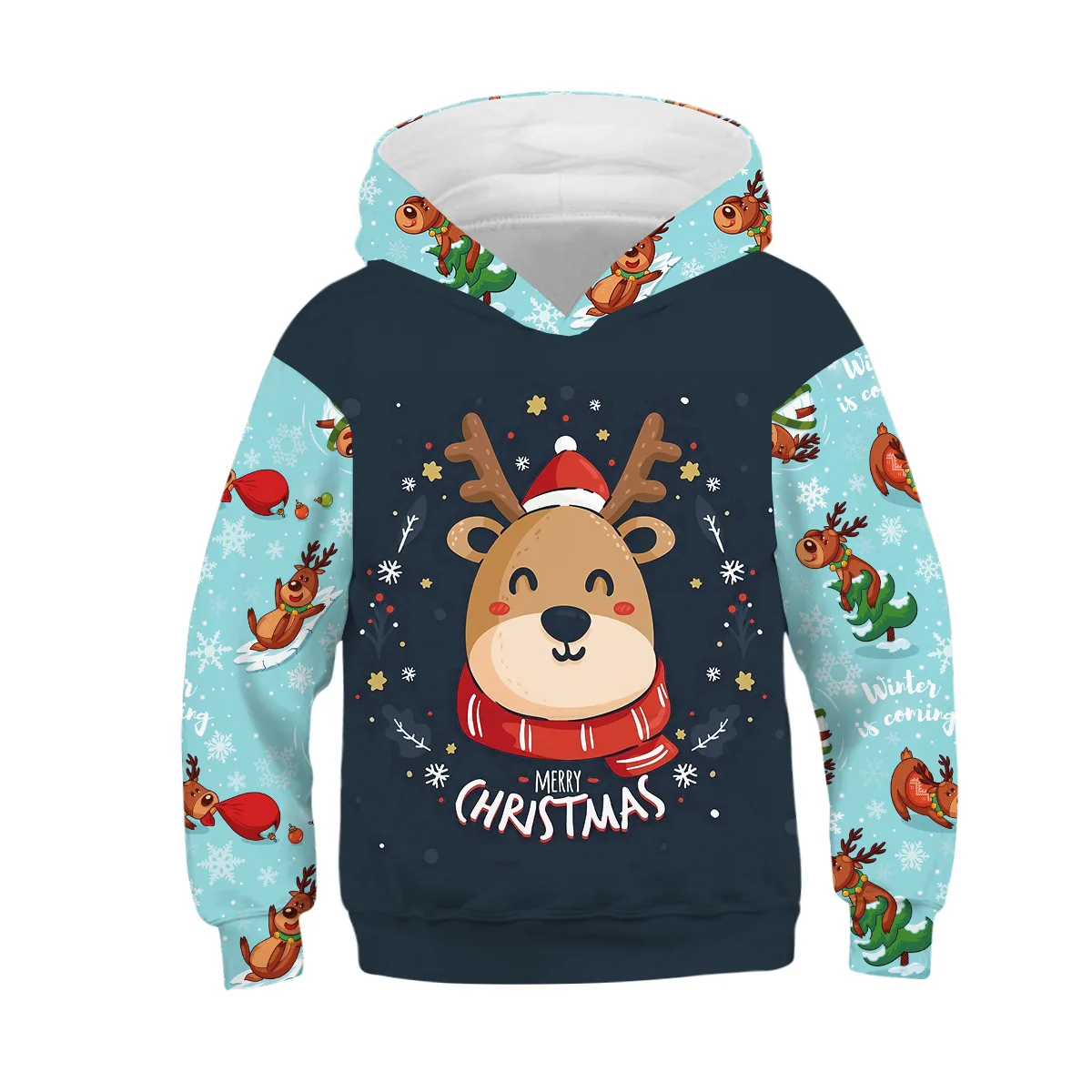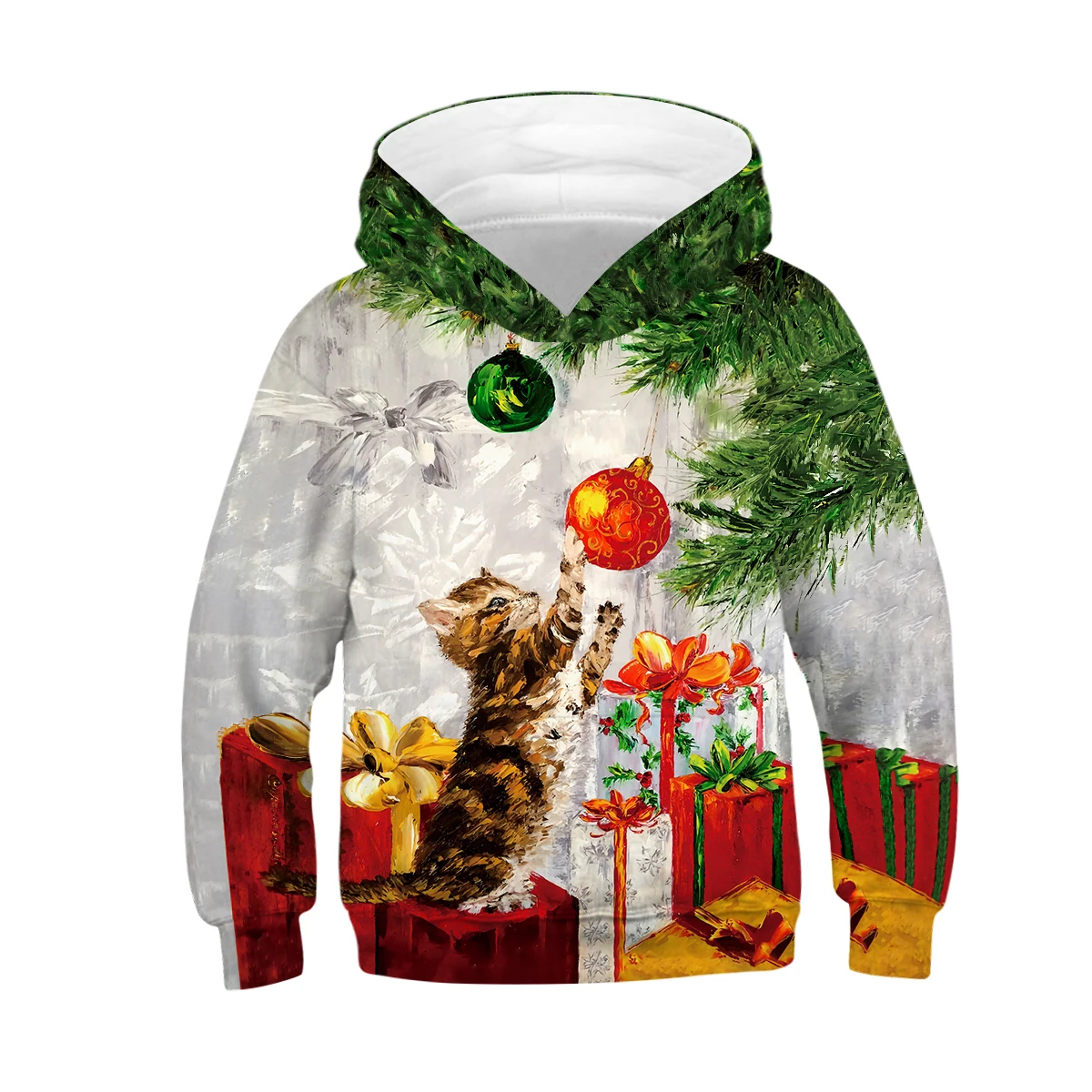 Худи для мальчиков, свитшот большого размера для подростков, для мальчиков 4-14 лет, Санта-Клаус, рождественское зеленое пальто