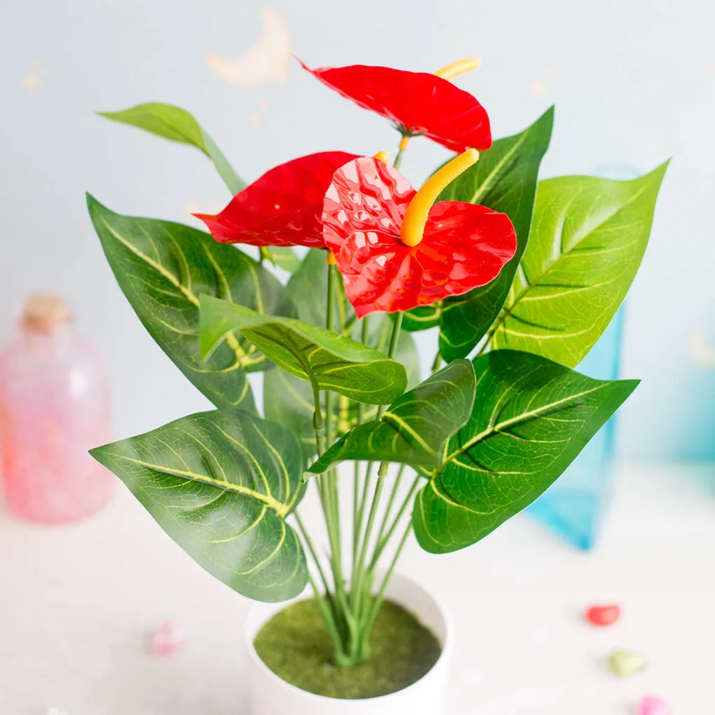 Подходит для украшения дома, офиса, искусственный антурий красивый и привлекательный, также может подойти для многих случаев.