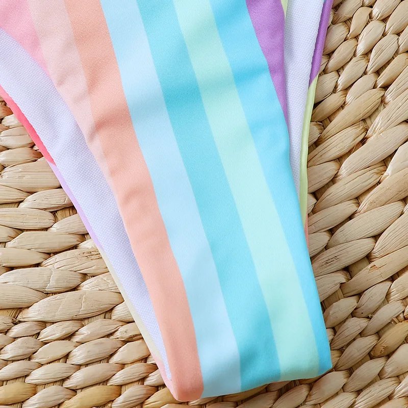 Микро-Бикини женское с радужным принтом, пикантный полосатый купаль...