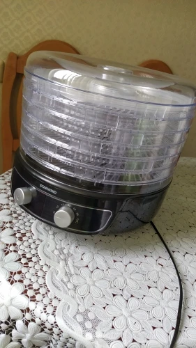 Внешний вид традиционный, благодаря прозрачному пластику вы можете наблюдать за процессом. Серый цвет подобран хорошо, хорошо сочетается с черными акцентами. Сушилка для овощей StarWind устойчива на прорезиненных ножках, не скользит по поверхности стола.