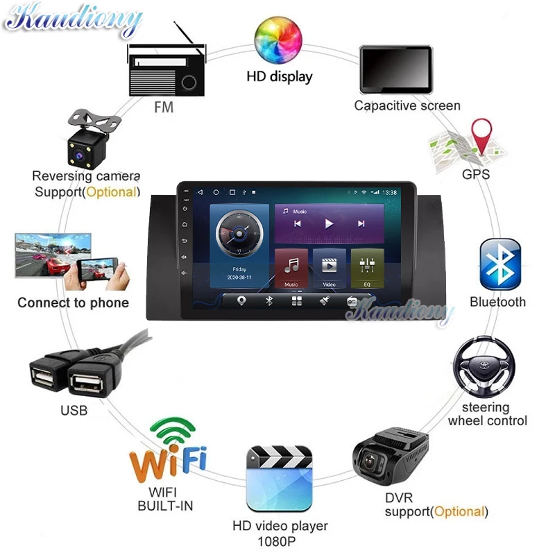 Подходит для BMW X5 E39 E53 M5 1995 1996 1997 1998 1999 2000 2001 2002 2003 2004 2005 2006Встроенная функция Wi-Fi (подключение к горячей точке с вашего смартфона для Интернета)