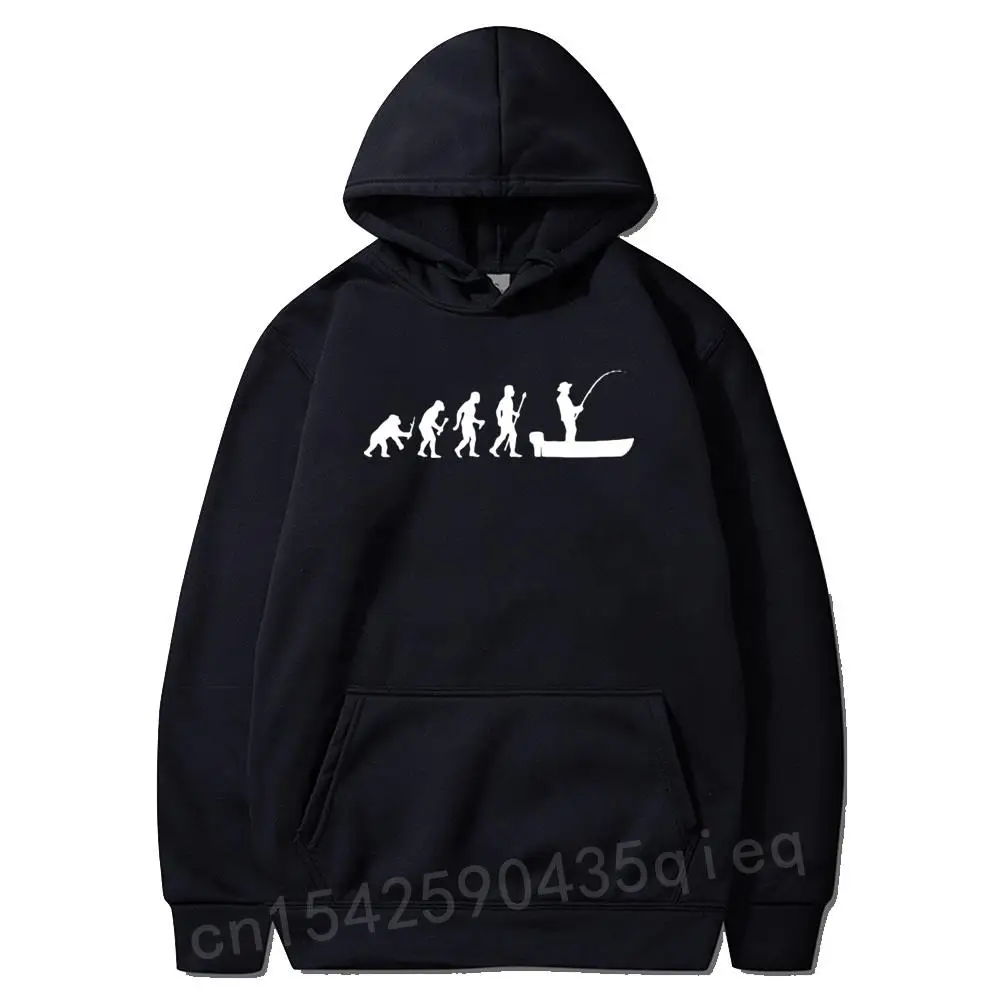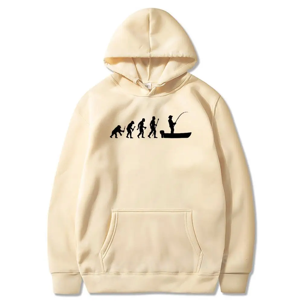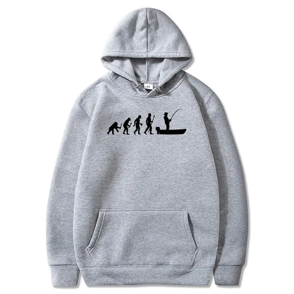 Толстовка мужская с капюшоном, свитшот с длинным рукавом, рыбалка, эволюция, принт человека, осень