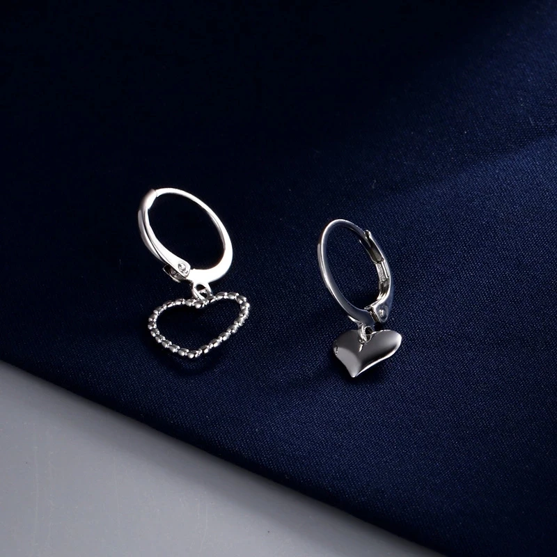 Модные асимметричные серьги-гвоздики серебряного цвета в форме серд...