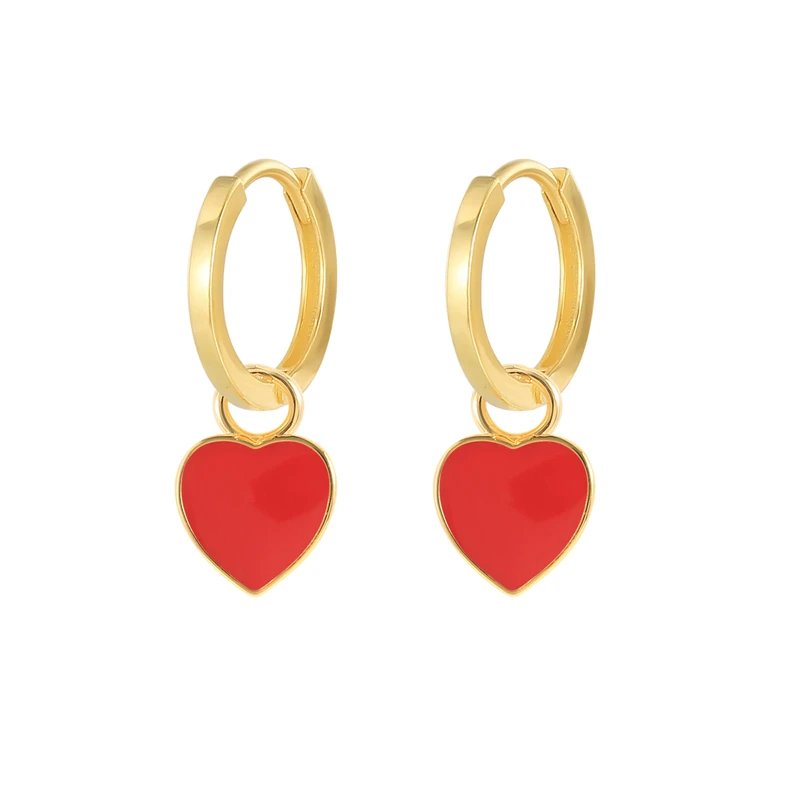 Женские серьги-кольца BOKAO из серебра 2021 пробы, с красным искусственным сердцем