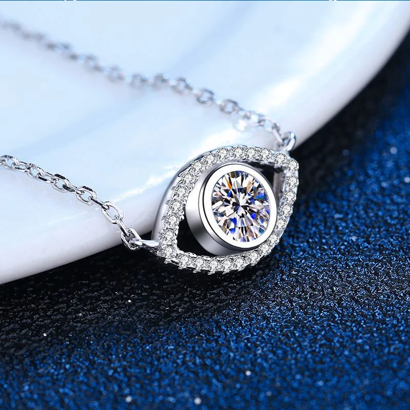 Ожерелье из настоящего серебра с муассанитом 0,5 карата, ожерелье с бриллиантом, ожерелье с подвеской «сглаза» для женщин и мужчин, подарок, изящные украшения