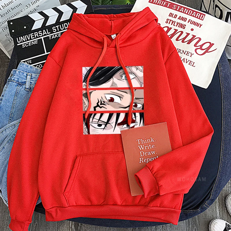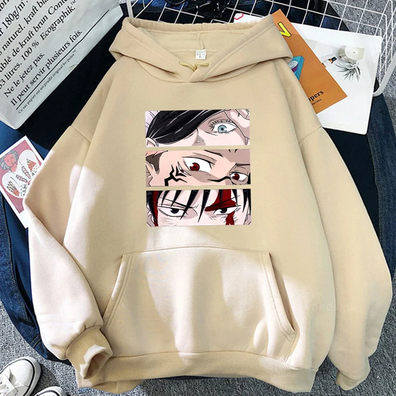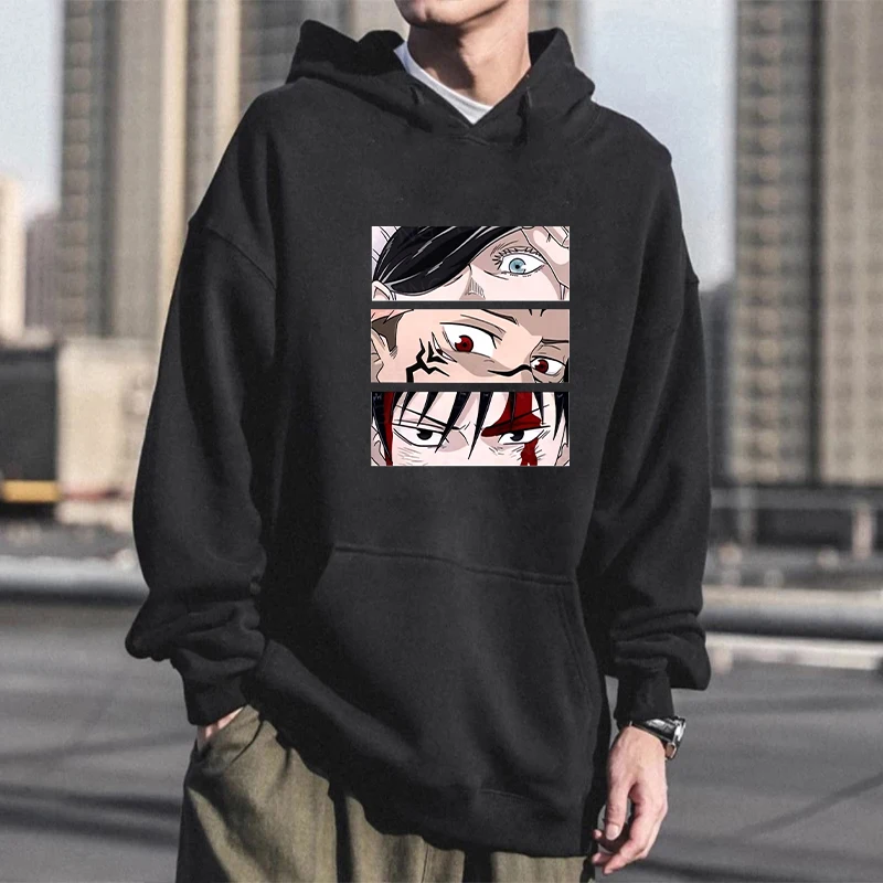 Японские толстовки с капюшоном для мужчин и женщин, мультяшный свитшот в стиле японского аниме, джутсу, кайсен, Харадзюку, манга, годжо, Сатору и риомен, пэчворк с принтом глаз