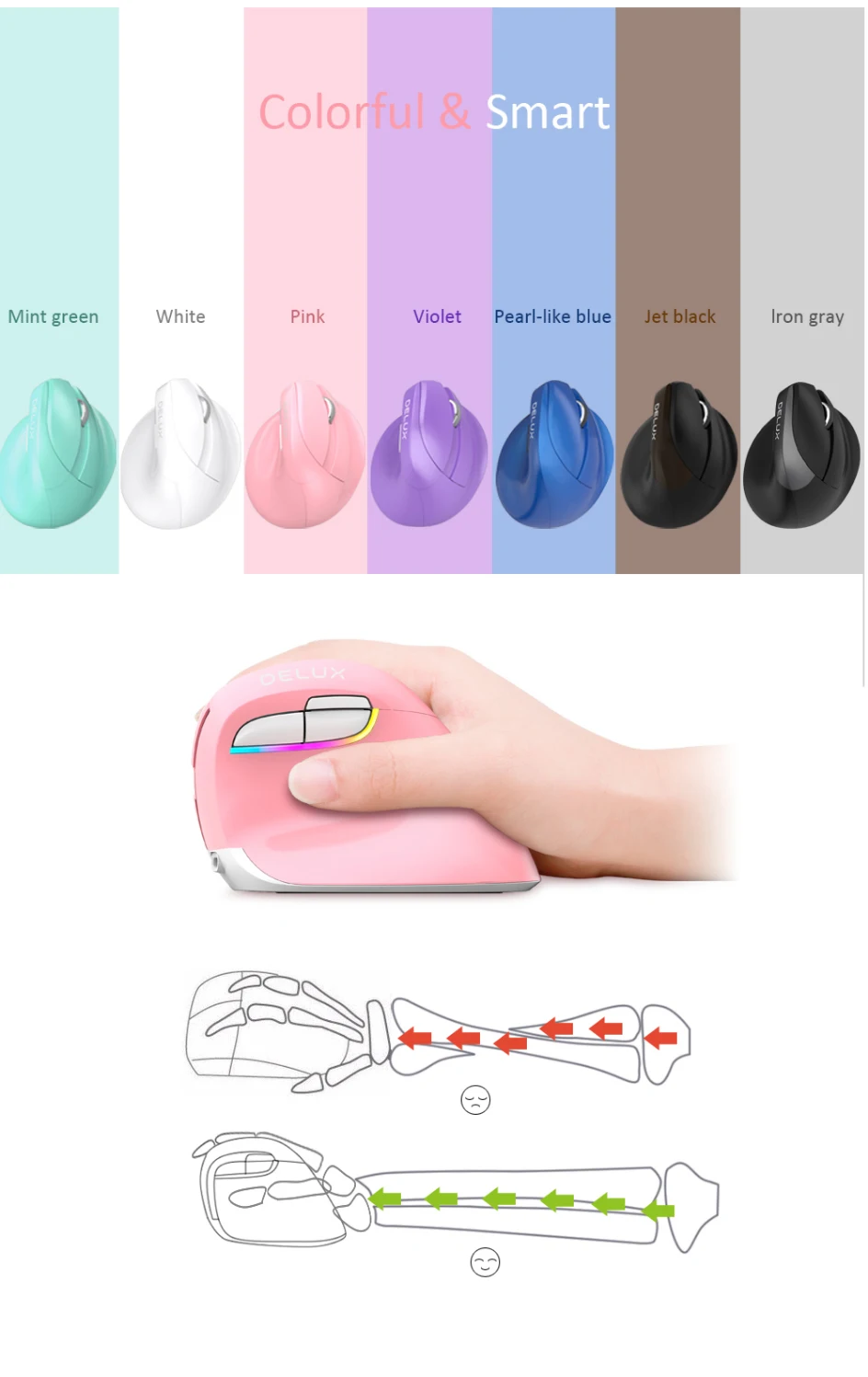 Мышь Delux M618Mini Вертикальная аккумуляторная с поддержкой Bluetooth, 2,4 ГГц