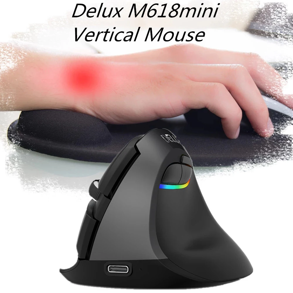 Delux M618Mini Bluetooth 4,0 + 2,4G Беспроводная беззвучная Вертикальная мышь 4 зубчатая DPI RGB эргономичная перезаряжаемая мышь для ПК ноутбука смартфона