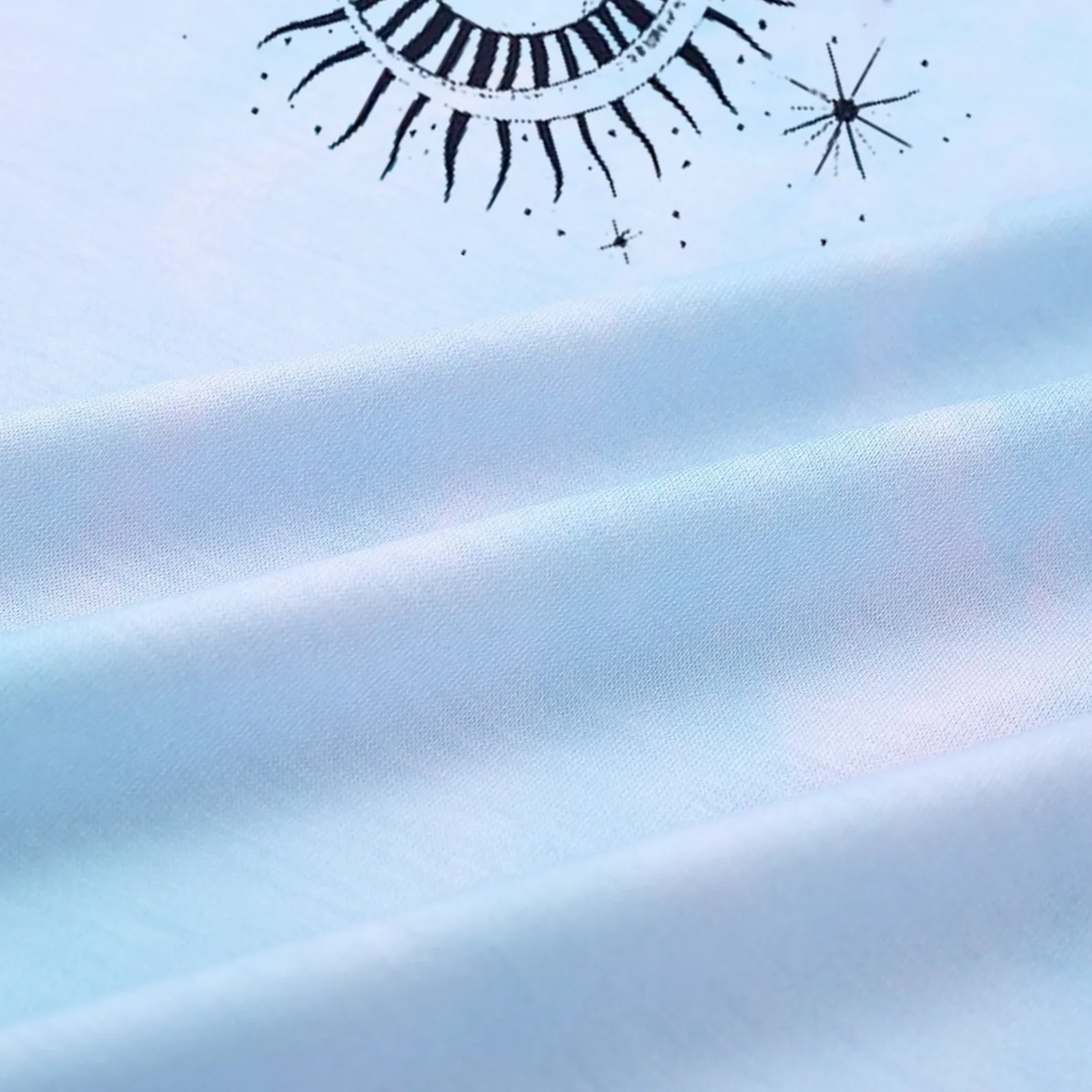 Женская винтажная Повседневная Блузка с принтом Солнца и Луны, топы с коротким рукавом и галстуком-бабочкой, женские рубашки, блузки, блузка, джедваб, одежда 2021