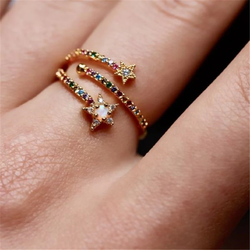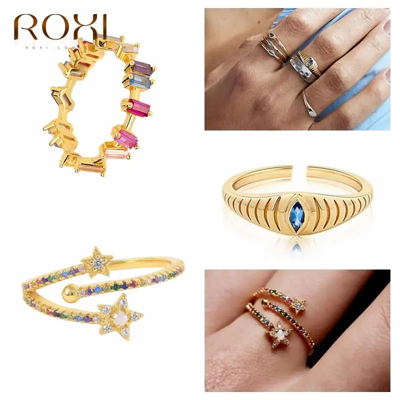 ROXI красочные Кристальные звезды глаза золотые кольца для женщин 2021 пара колец ювелирные изделия Модные Нерегулярные камень палец кольца Anillos Ins Характеристика