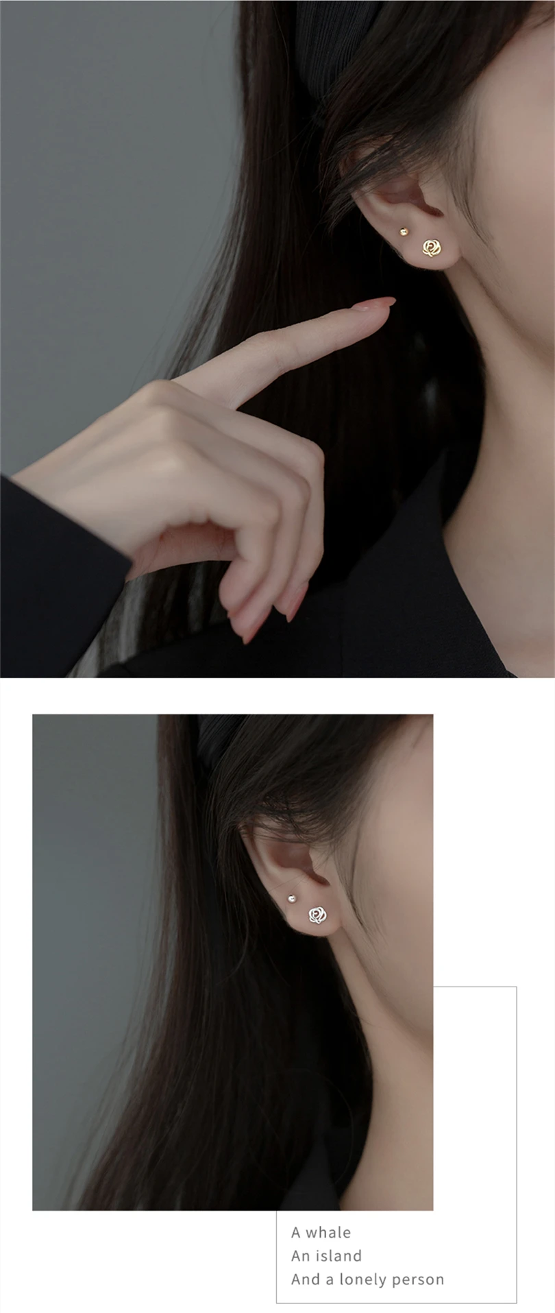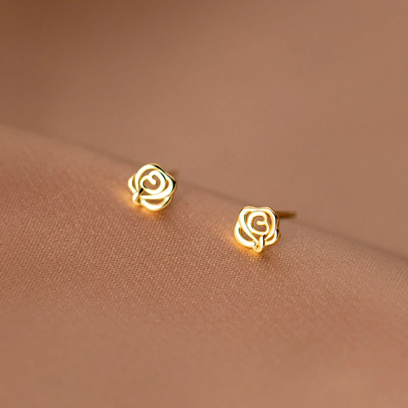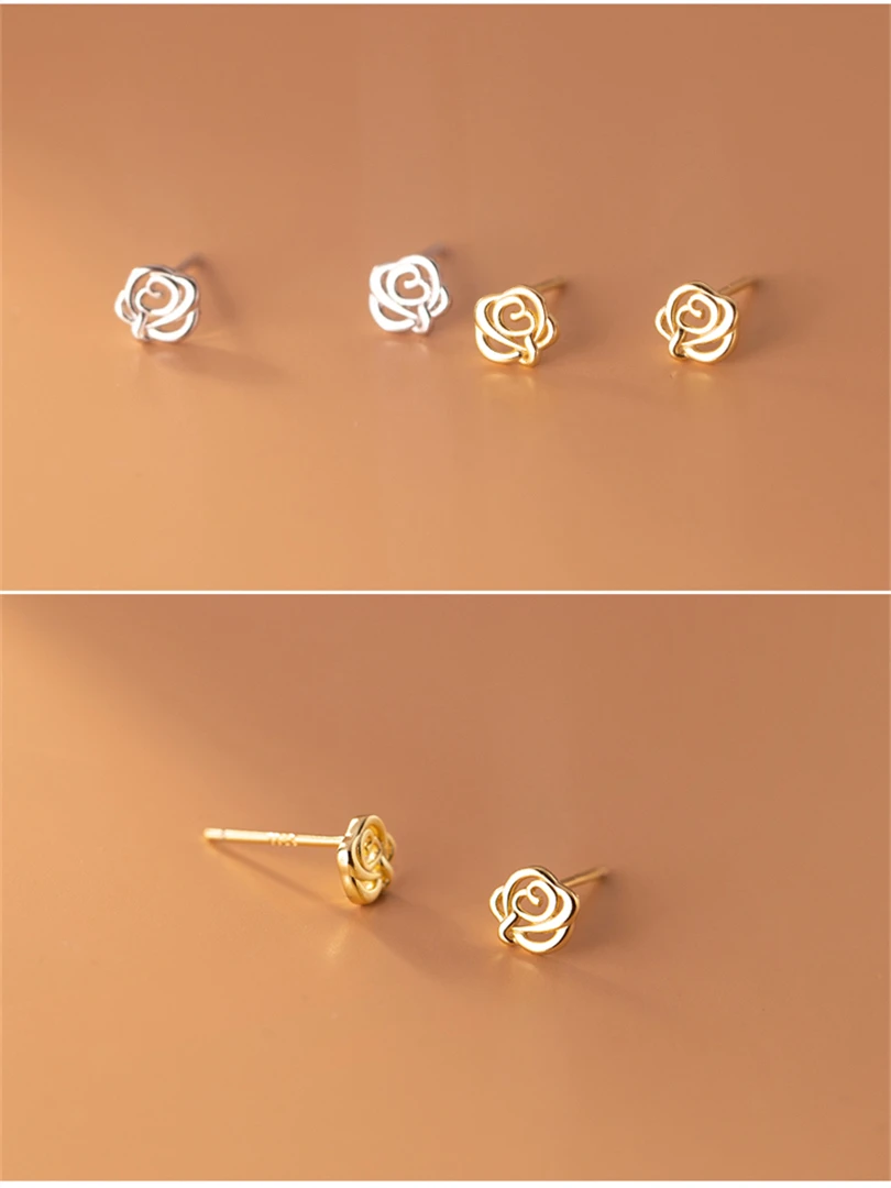 Женские серьги в виде розы, маленькие серьги в уши, летние ювелирные украшения, 925 пробы, Серебряное пустое сердце пробы, 2021