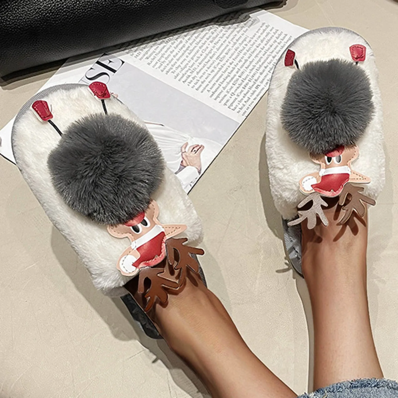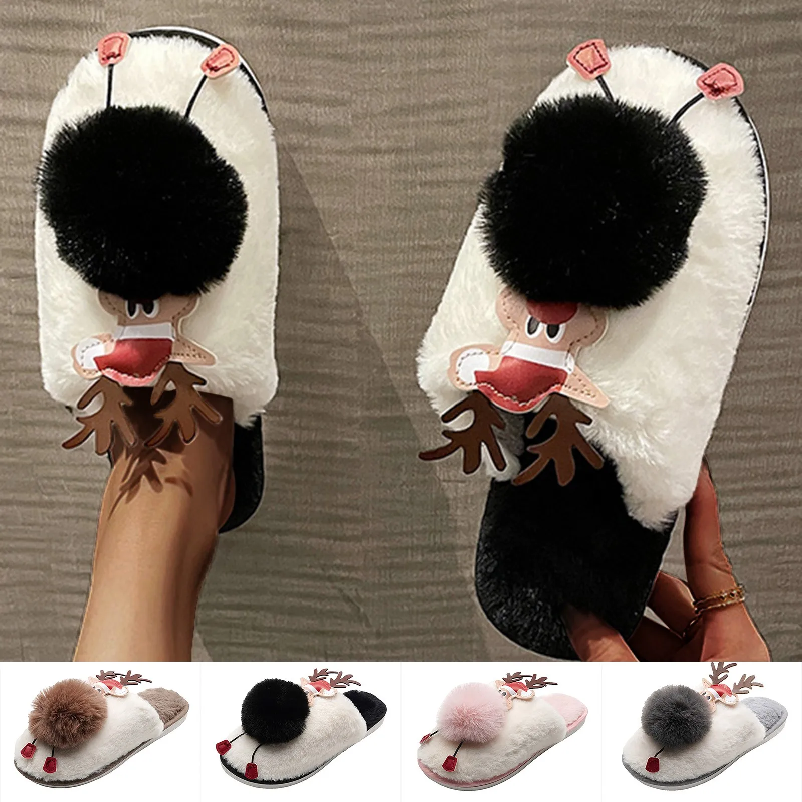 Рождественские олени плюшевые домашние тапочки, Женская Повседневна...