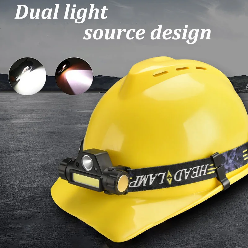 Светодиодный налобный фонарь XPE + COB, 2 режима освещения со встро...