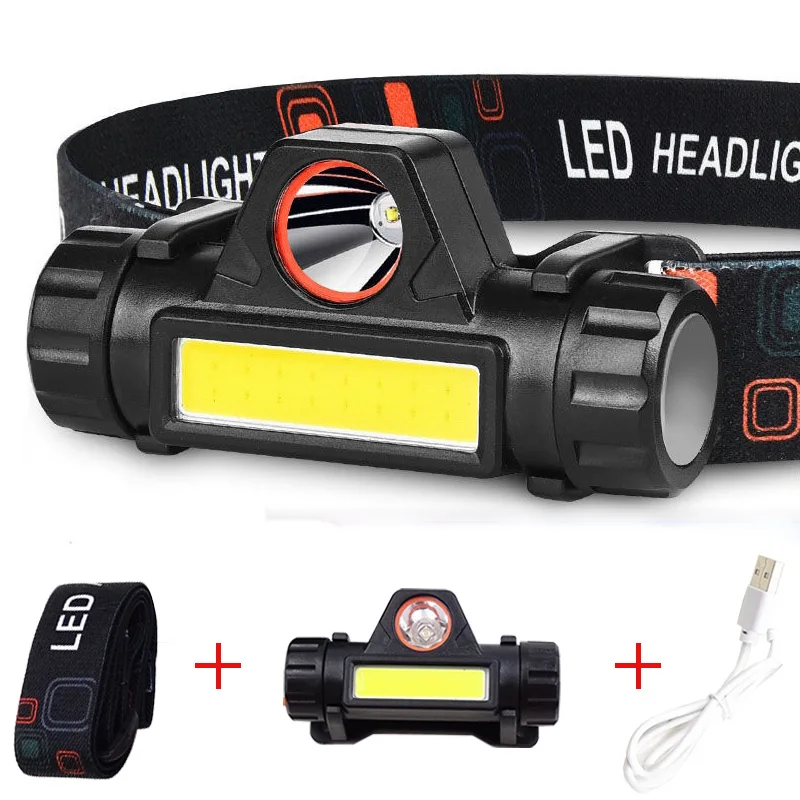 Новая перезаряжаемая USB фара мощный XPE + COB налобный фонарь IPX6...