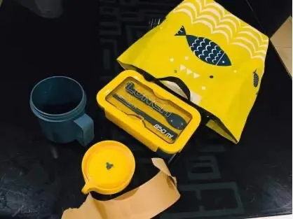 Набор отличный! Никаких посторонних запахов у посуды, сумка большая (немного торчат нитки, но это не критично). Покупала мужу для обедов на работу-все довольны) Не держатся палочки в держателе-не критично, сверху закрыто крышкой все равно