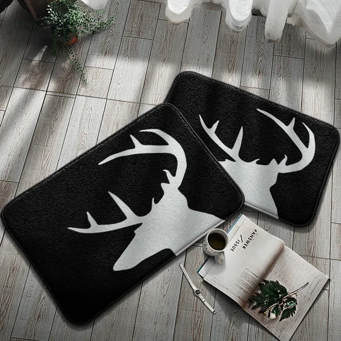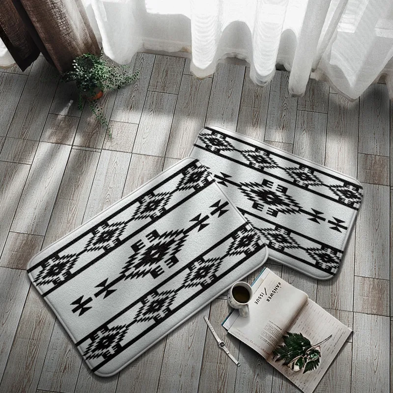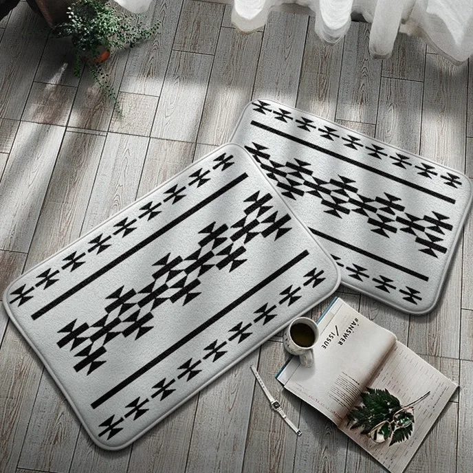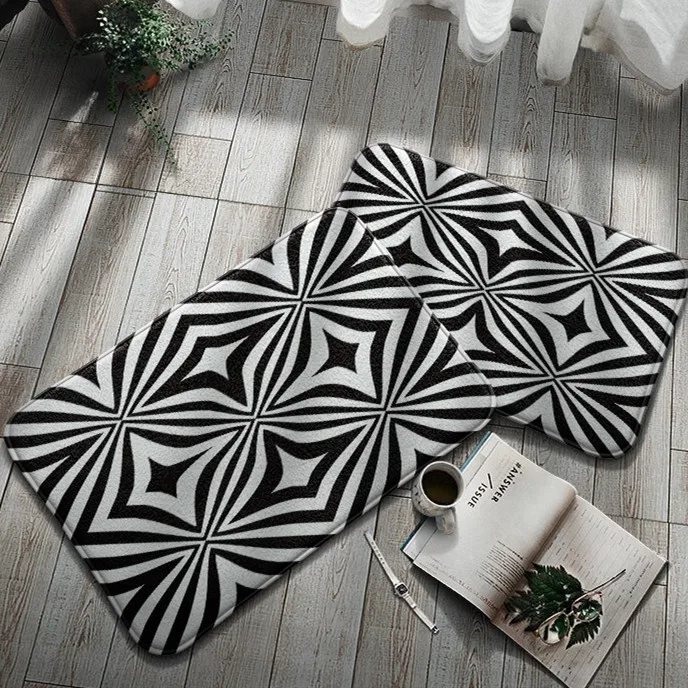 Коврик напольный с геометрическим рисунком, мягкий ковер для гостиной, кухни, ванной комнаты, Нескользящий Впитывающий, черный и белый цвета, 40 х60 см
