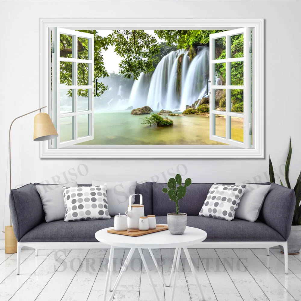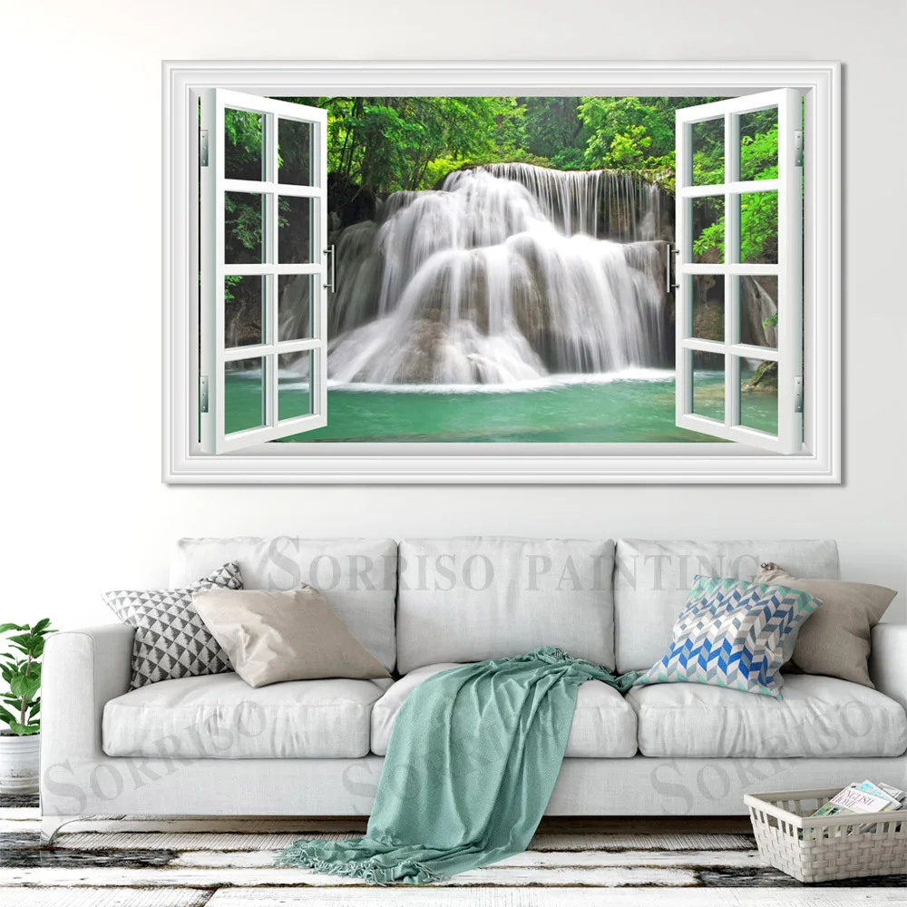 Пейзаж водопад, река, пейзаж, 3D настенное искусство, имитация окна, дизайн, холст, живопись, плакаты, картины, принты, Декор для дома, гостиной