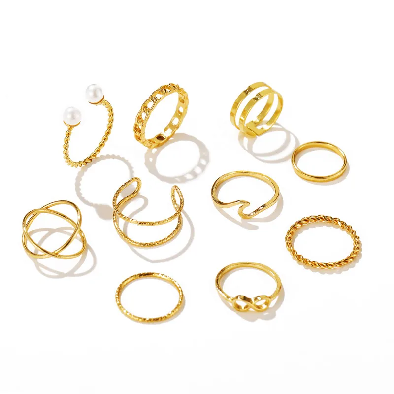 Набор Колец LETAPI в богемском стиле для женщин, элегантное кольцо золотого цвета с перламутровым жемчугом и перекрестными волнами, в стиле ретро