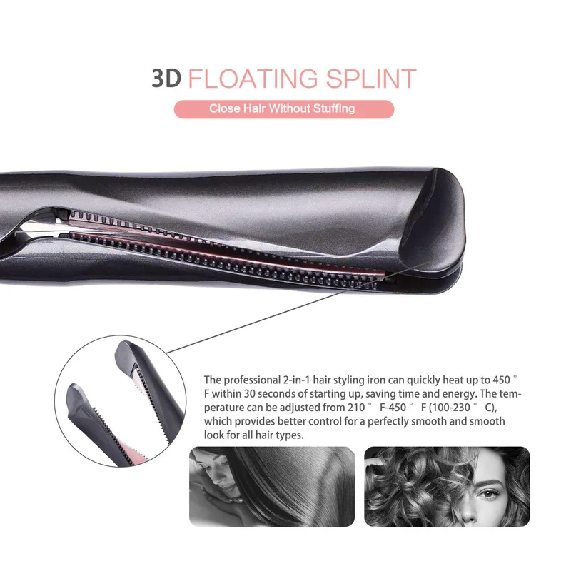 Выпрямитель для волос 2-в-1, плойка, профессиональный утюжок для за...