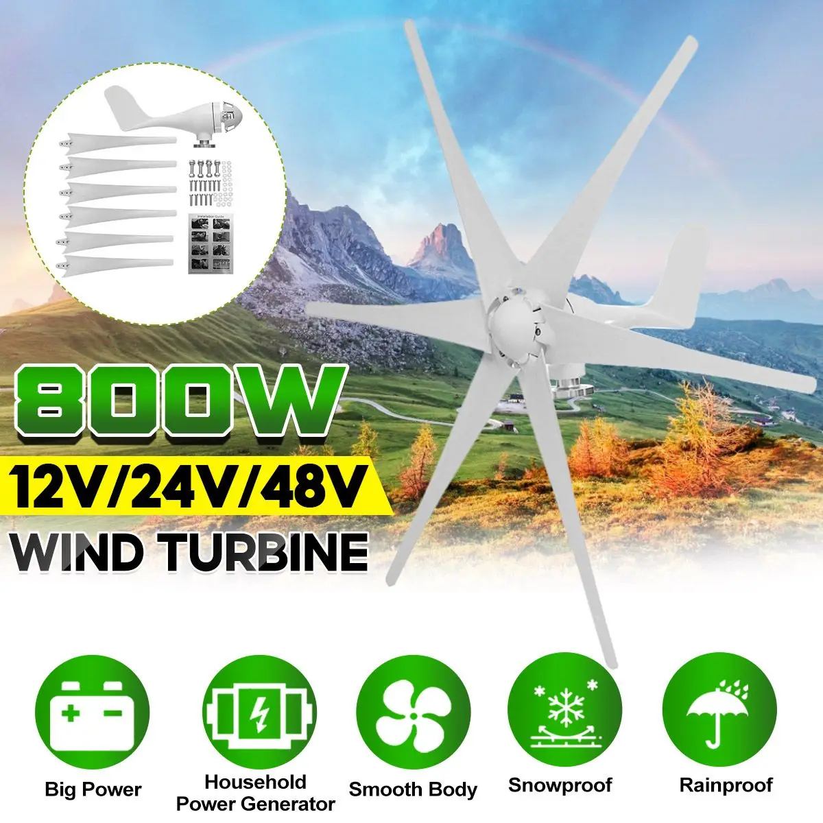 Ветряная турбина с 6 лопастями, 800 Вт, 12 В, 24 В, 48 В