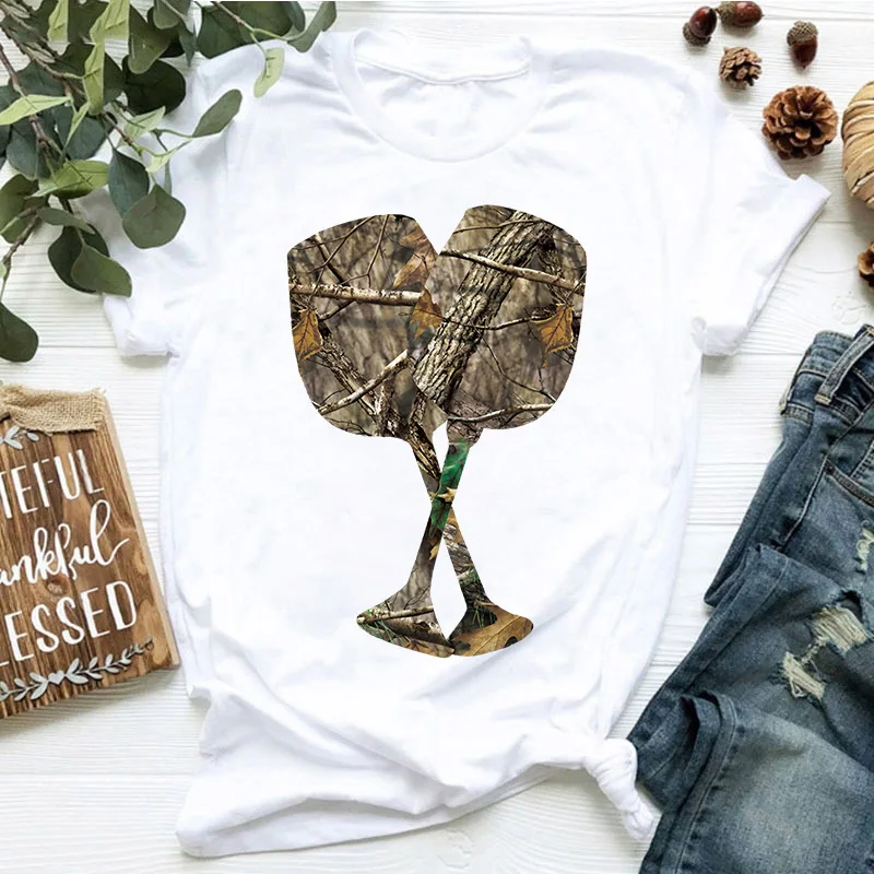 Футболка женская камуфляжная, тюрбан с принтом черепа и оленя, коро...