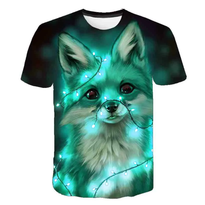 Новинка лета 2021, детская светящаяся модная футболка в уличном стиле с аниме котом, симпатичная футболка для мальчиков и девочек с 3D-принтом лисы