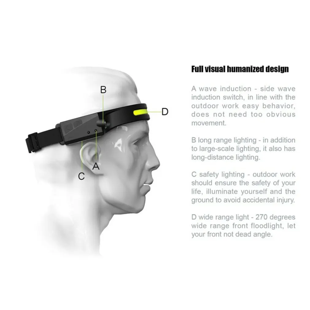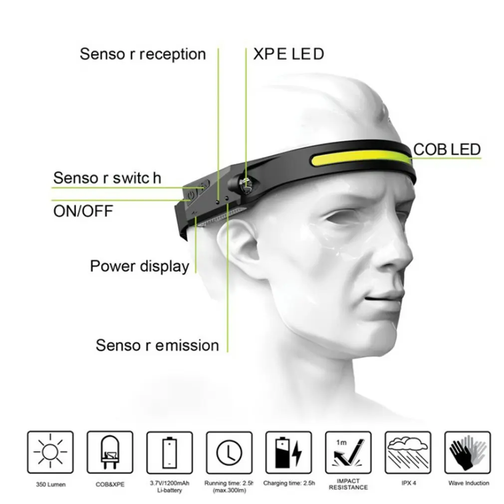 1. Индукция волны: с боковым Индукционным датчиком волны и сенсорной пряжкой, удобно работать на открытом воздухе при ношении этой фары.
