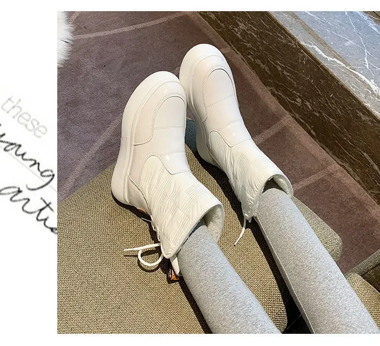 Женские зимние ботинки Lisapie, бежевые плюшевые теплые меховые повседневные ботинки, обувь на платформе, на толстой подошве, со шнуровкой, зимние кроссовки, ботильоны