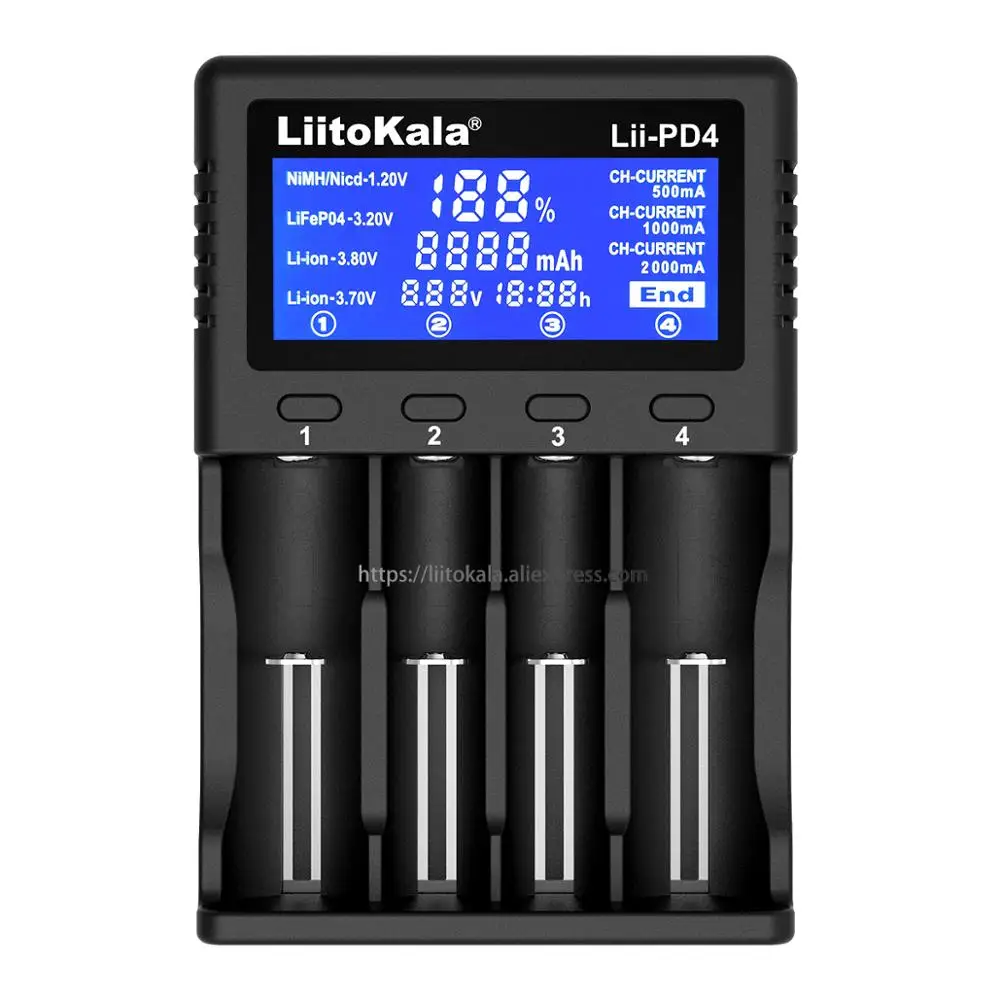Зарядное устройство работает в 6 Слотах независимо. Он может заряжать литий-ионные аккумуляторы и никель-металлогидридные аккумуляторы одновременно.