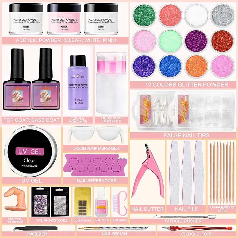 * 2. 42 в 1 акриловый набор для ногтей. Этот акриловый набор для ногтей содержит 12 цветов, которые удовлетворят большинство ваших потребностей. Этот полный комплект используется для резьбы ногтей и наращивания ногтей, вы можете создать Акриловое Наращивание ногтей для длительного эффекта блеска. Он прост в использовании и подходит как для профессионалов, так и для начинающих.