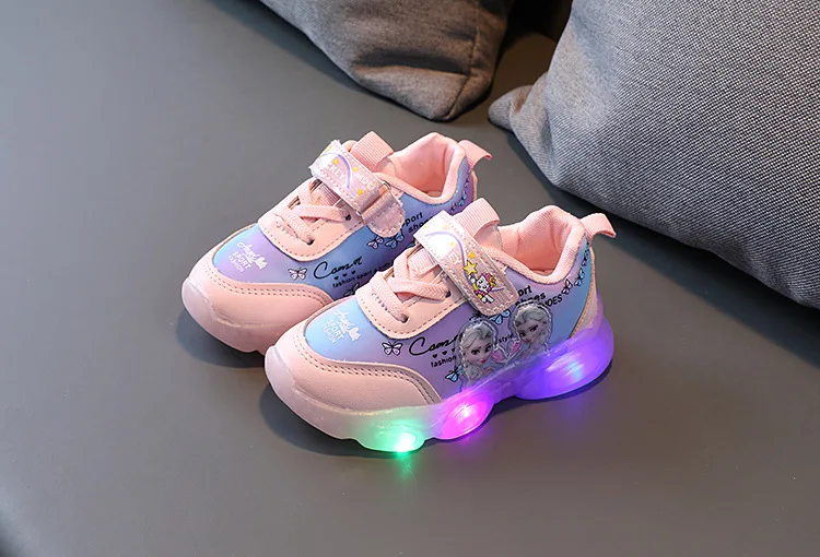 Disney/Новинка 2021 года; Детская обувь принцессы со льдом и снегом для девочек; Повседневные Нескользящие кроссовки со светящимися огнями