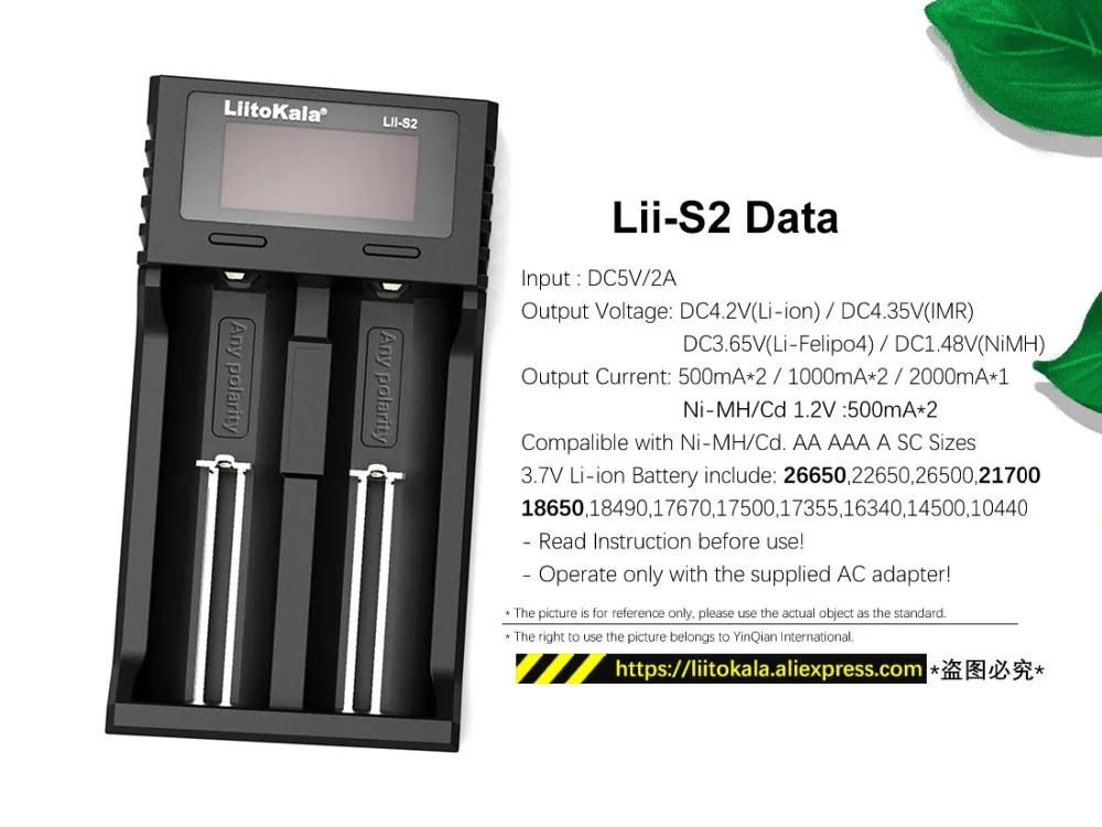 1. Зарядное устройство может быть только цилиндрической литий-ионной батареей, никель-металлгидридных батарей, не перезаряжаемых литий-железных фосфатных батарей;