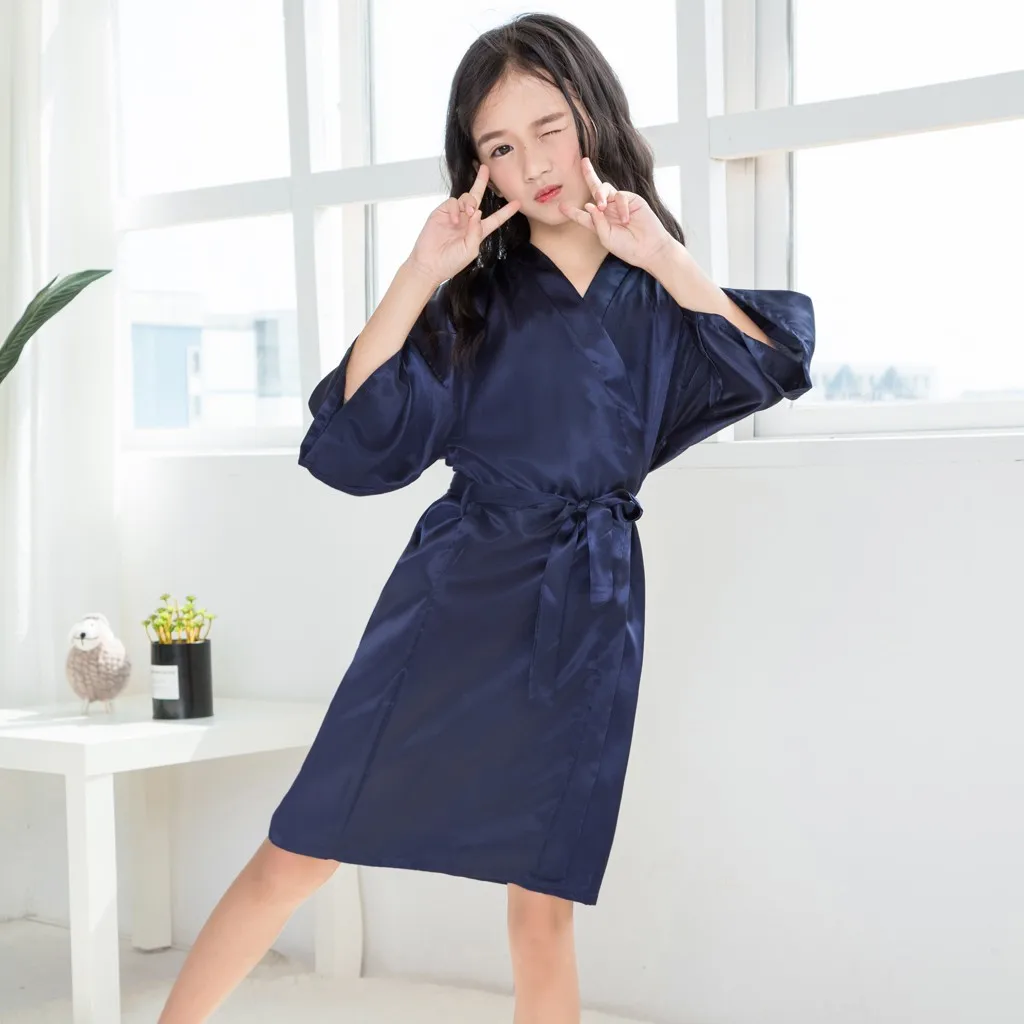 Цветочные однотонные халаты для девочек, однотонные атласные детски...