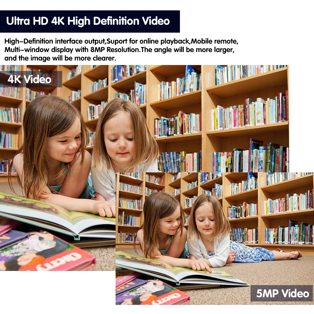Выход интерфейса высокой четкости, Suport для онлайн-воспроизведения, мобильный пульт, дисплей с несколькими окнами с разрешением 8 МП. Угол будет больше, и изображение будет более четким.