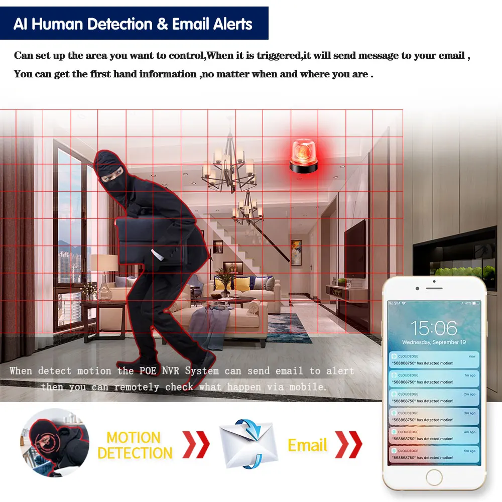 Можно настроить область, которую вы хотите контролировать, когда она срабатывает, она отправит сообщение на вашу электронную почту, вы можете получить информацию из первых рук, независимо от того, когда и где вы находитесь.