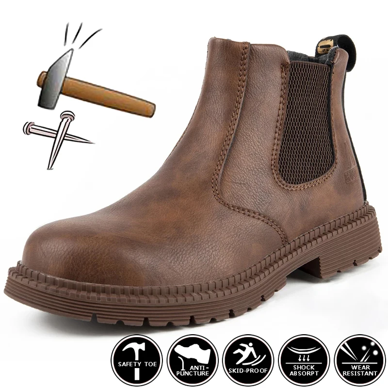 Кожаные рабочие защитные ботинки, мужские неразрушаемые Ботинки Челси, мужская обувь, зимние ковбойские мужские ботинки со стальным носком