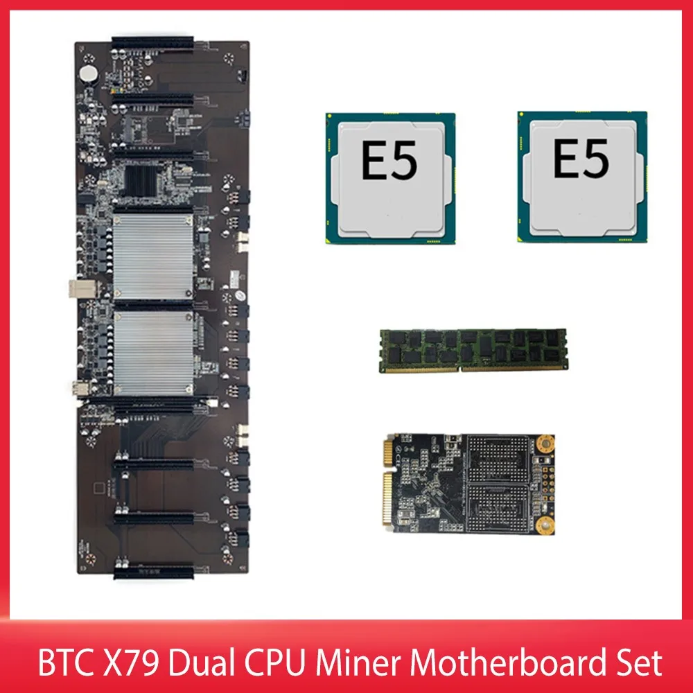 Материнская плата для BTC X79 с двойным процессором, материнская плата DDR3 8 PCI-E X16 с процессором E5-2620, RECC 8G DDR3 ПАМЯТЬ 120G MSATA SSD для поддержки 3060 GPU