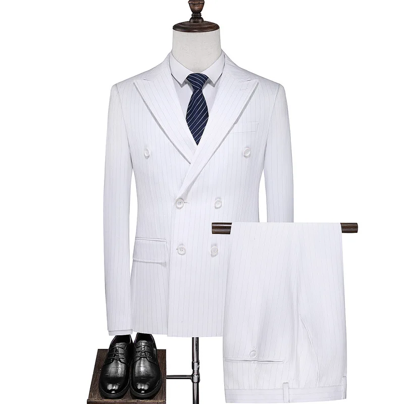 Новые мужские повседневные Костюмы, деловые костюмы, костюмы-тройки, свадебные платья для жениха, белые костюмы, мужской комплект 5XL