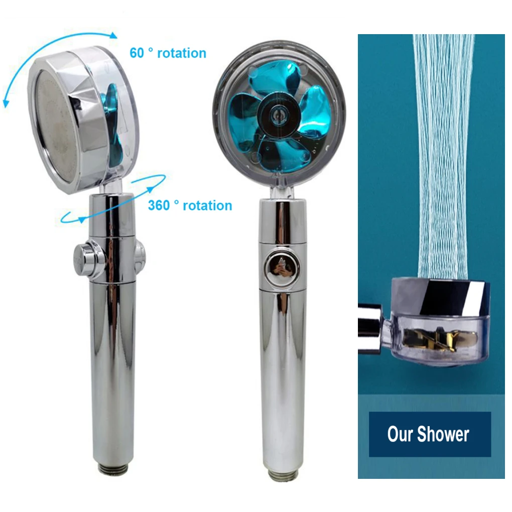 Насадка для душа создает поток воды через вращающееся колесо под давлением, увеличивая скорость потока воды, тем самым увеличивая давление воды. Применяется под низким давлением воды.