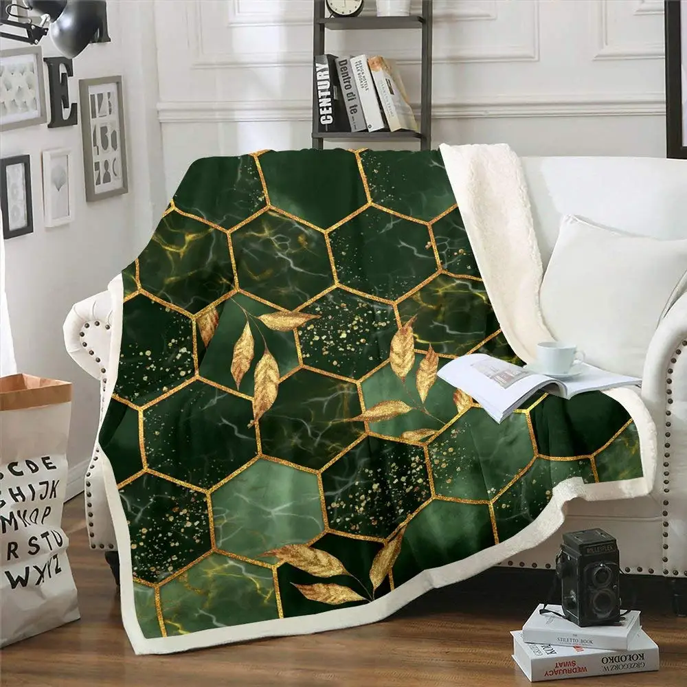 Зеленое обычное одеяло, роскошное удобное Флисовое одеяло с геометрическим рисунком листьев, теплое супермягкое удобное одеяло с шестигранными золотыми листьями icon star icon star icon star icon star icon star