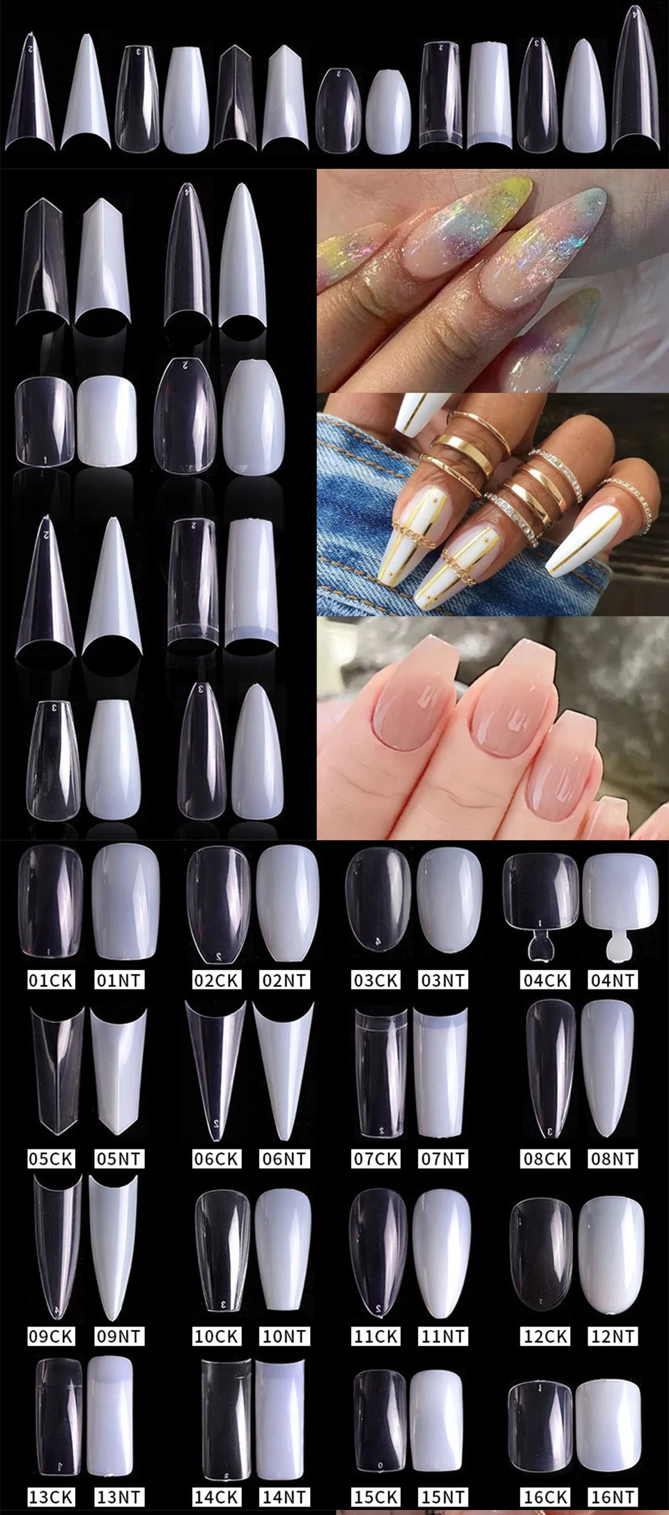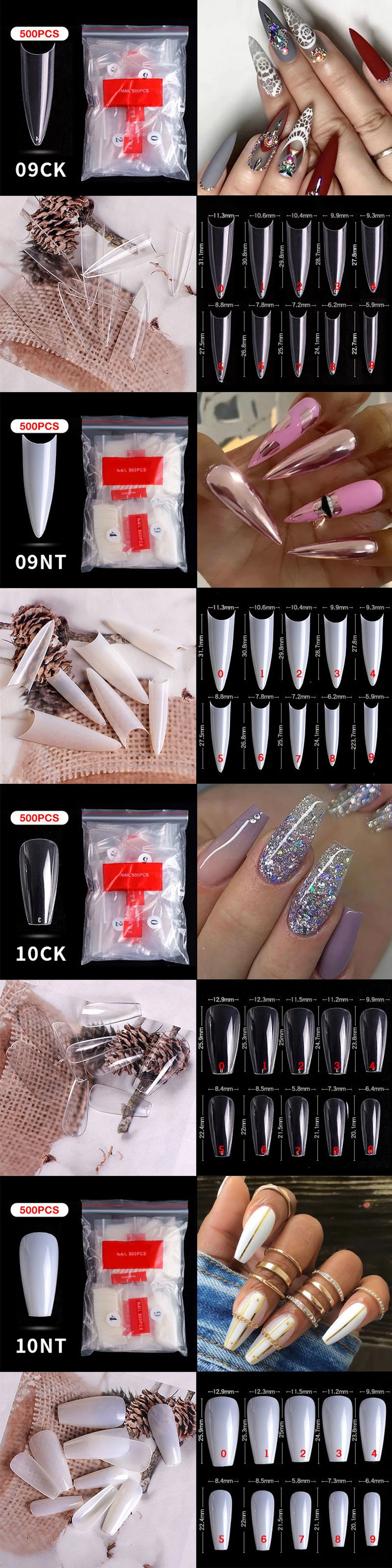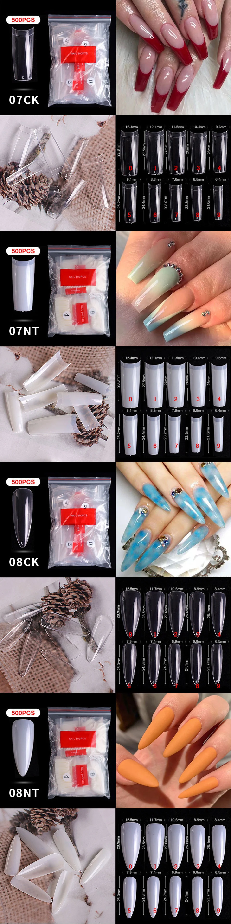 Накладные ногти прозрачного цвета, 500 шт., для наращивания ногтей,...