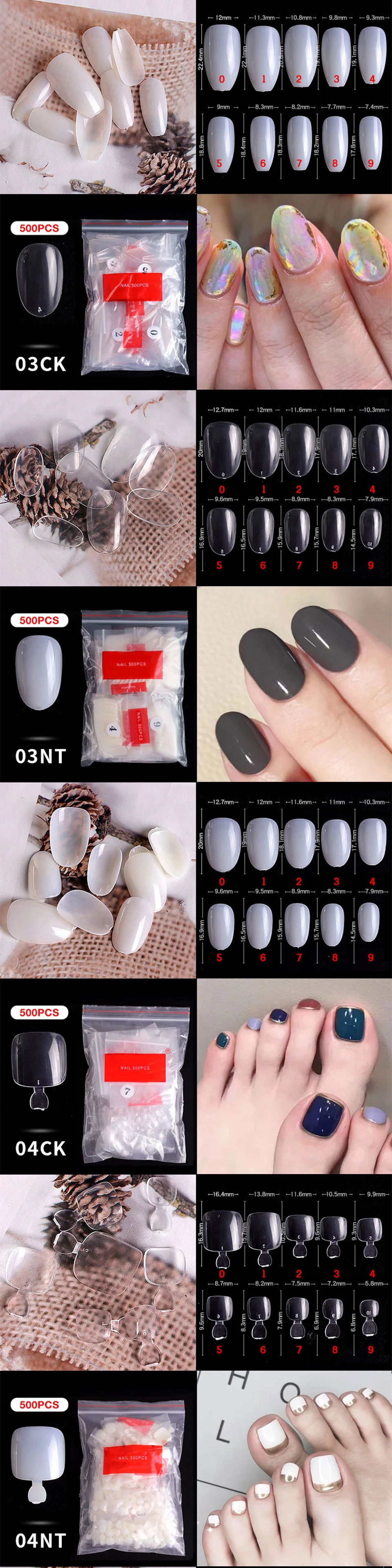 500 искусственные прозрачныенатуральные акриловые накладные ногти н...
