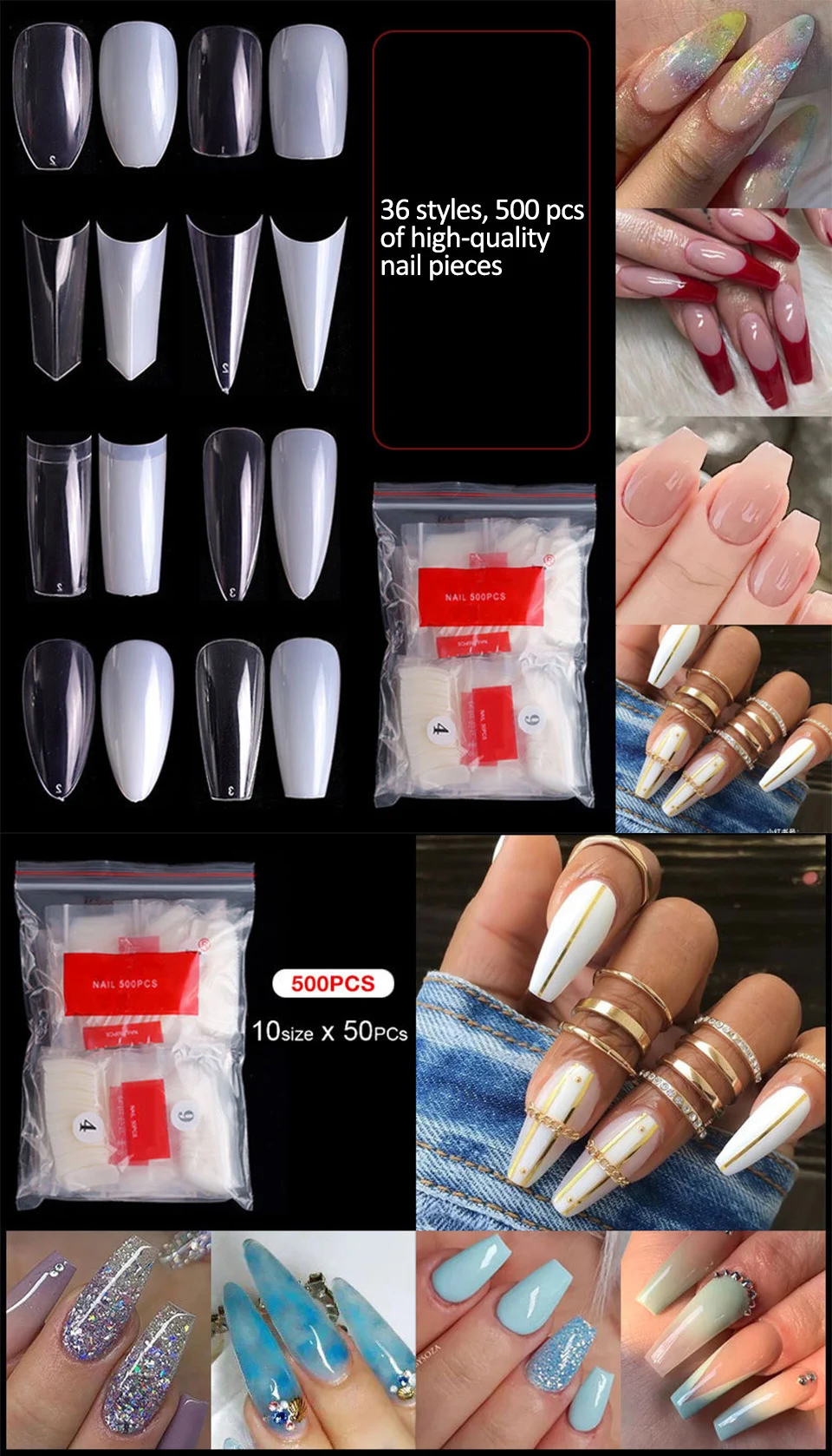 Накладные ногти 500, шт.пакет, акриловые накладные ногти, 10 размер...
