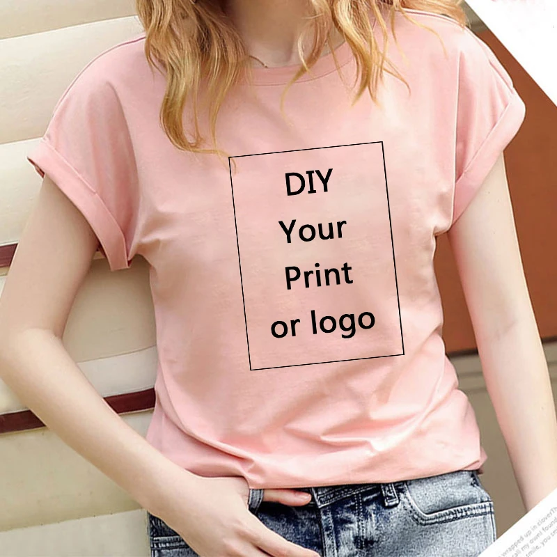 Женская футболка с индивидуальным принтом в стиле Харадзюку, женская розовая футболка сделай сам с вашим фото или логотипом, модная женская одежда на заказ, топы, футболки