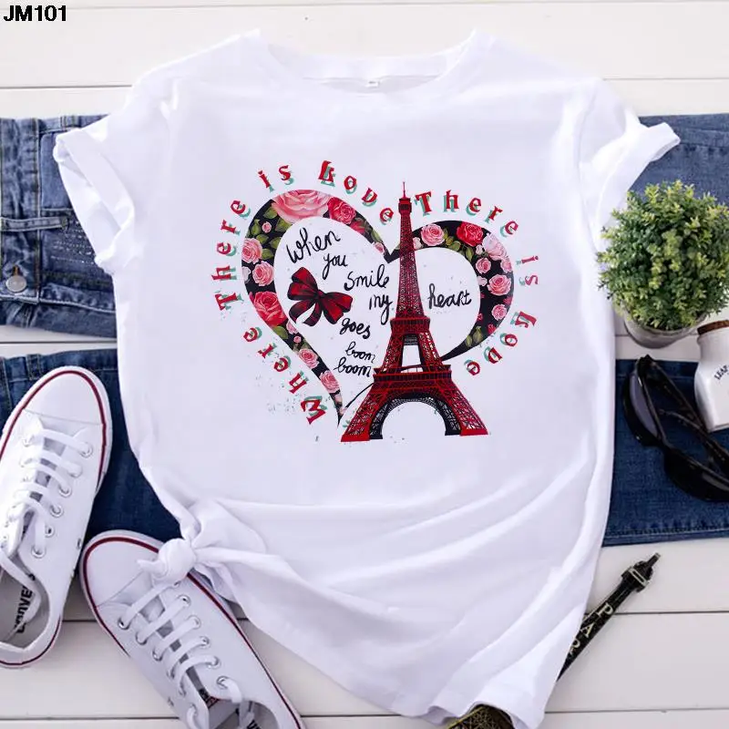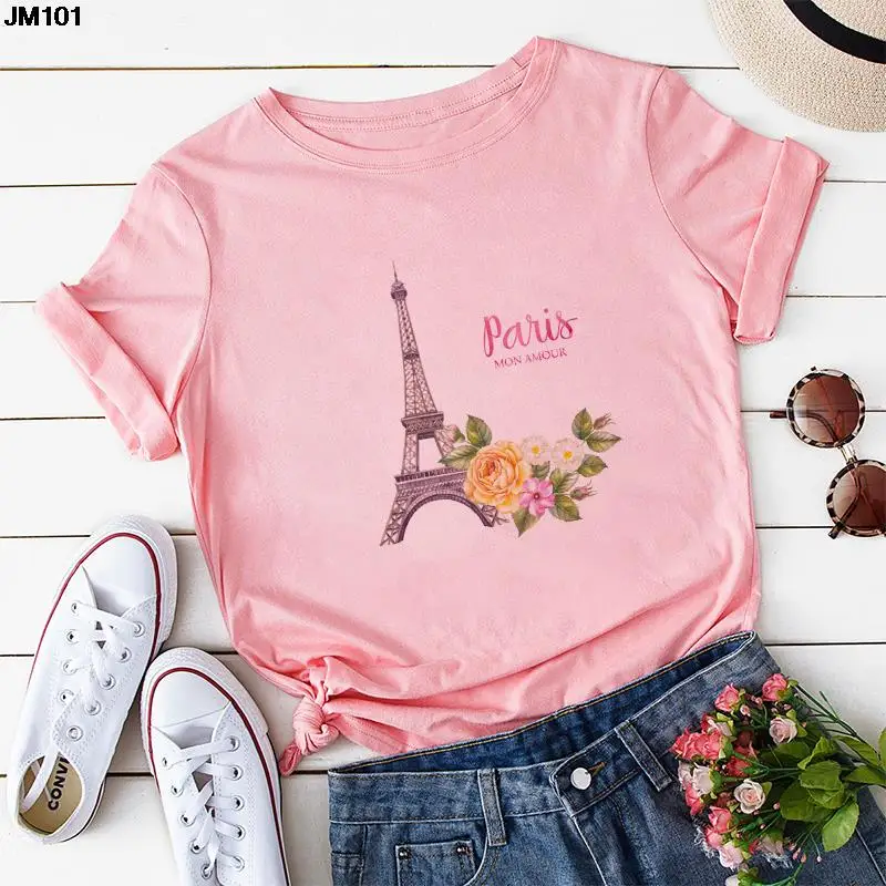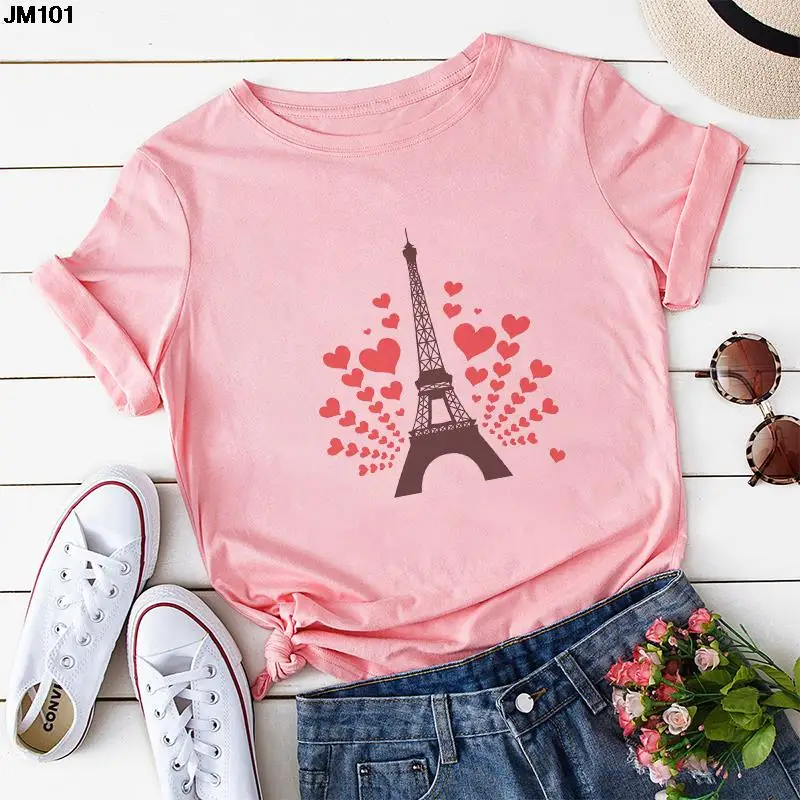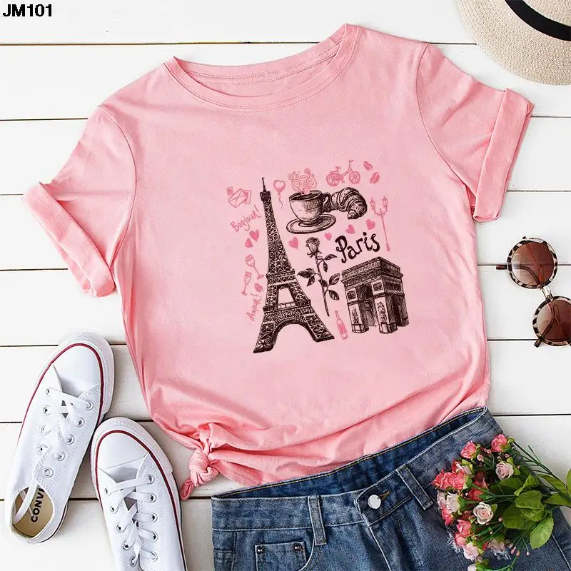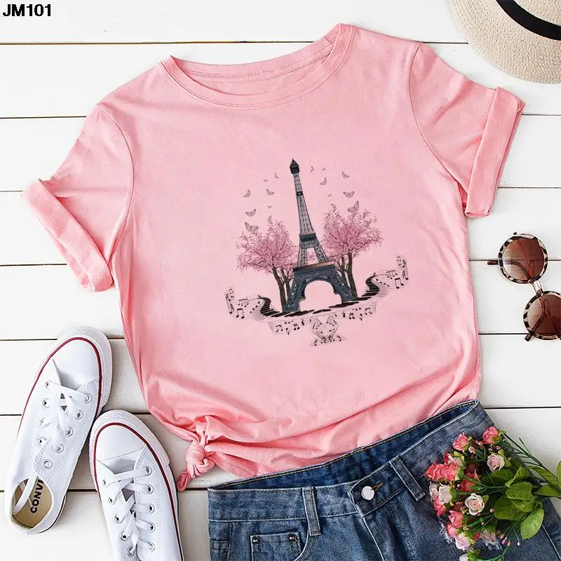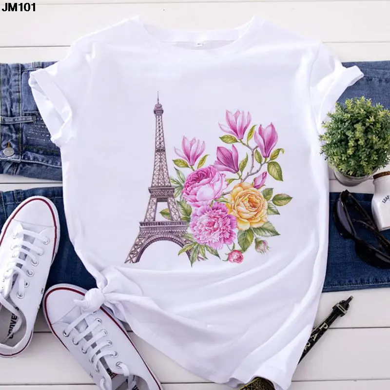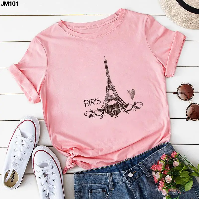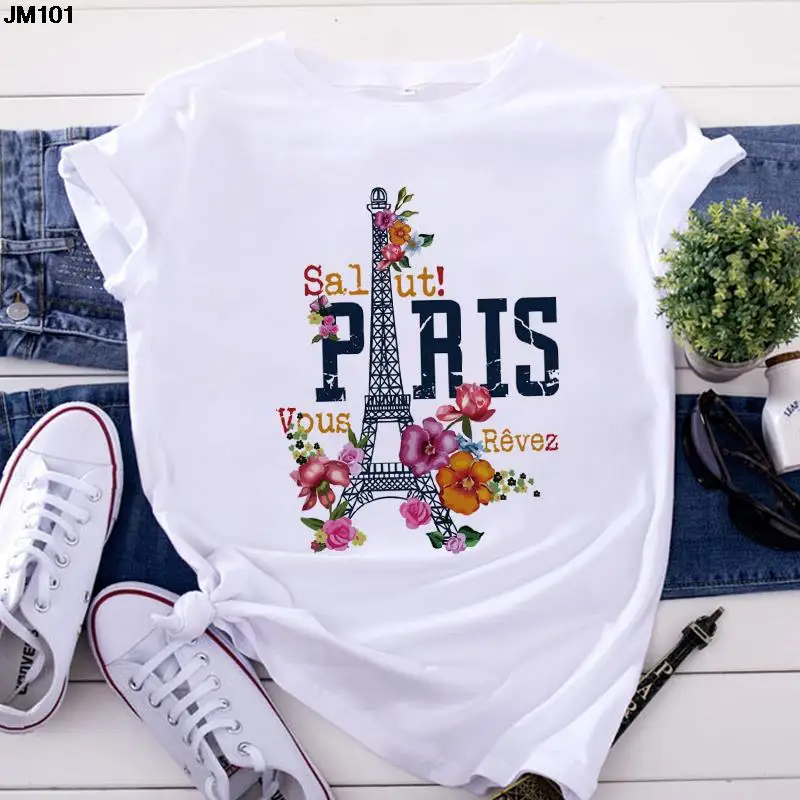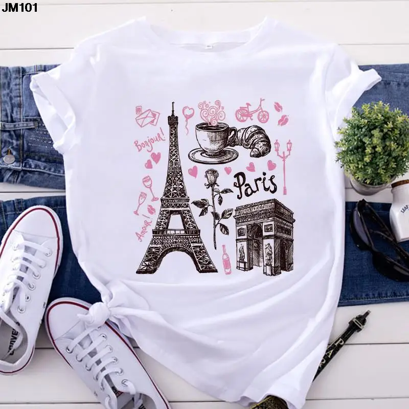 Футболка женская, летняя, с принтом Эйфелевой башни, в стиле Харадзюку
