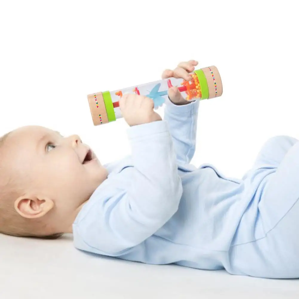 Мини-детские дождевые палочки с бусинами, детские мини-деревянные музыкальные инструменты, красная погремушка и погремушка, игрушка-дождевик для детей