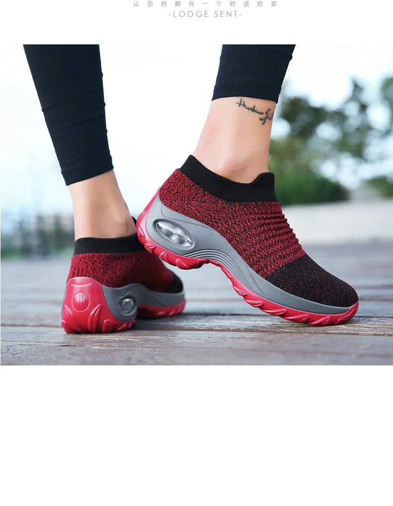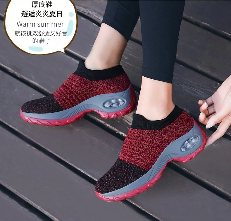 Женская обувь с воздушной подушкой, модные носки, кроссовки, прогулочная обувь на платформе, Модная вязаная женская обувь для отдыха, спортивная обувь для бега 7