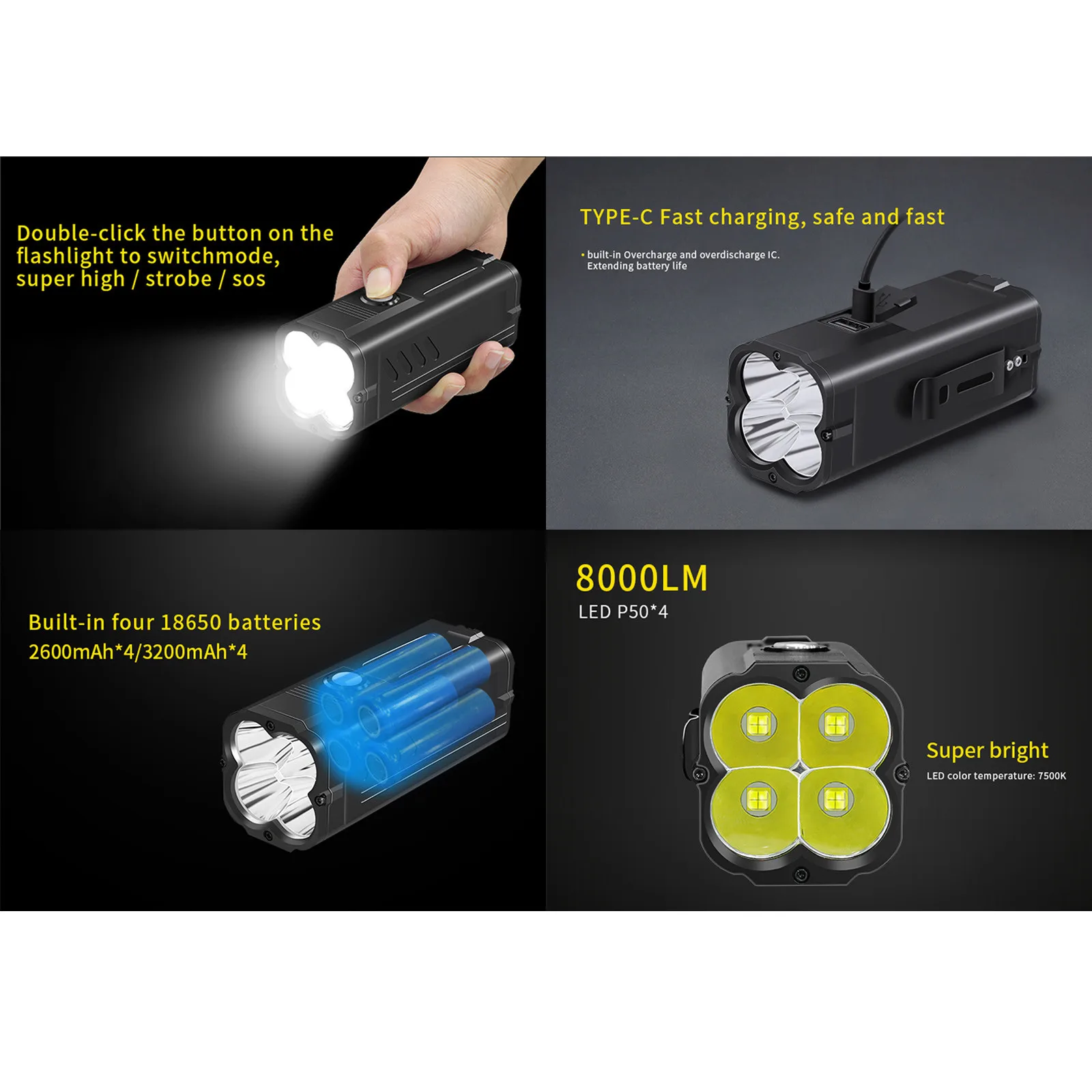 3 * XHP90 светодиодный фонарик тактильный фонарик USB перезаряжаемая горелка с 4800mAh